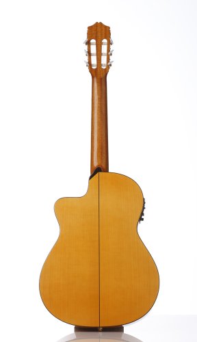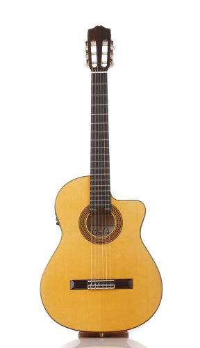 Cordoba 45FCE flamenco style cutaway electric guitar. Solid European Spruce top with Sycamore back/sides. Spanish flamenco body depth and soft cutaway with flat neck angle for low action and quick response. Cordoba 4band EQ with onboard tuner. 650 mm scale length, 50 mm nut (1.96 inches) Includes Humicase Protégé humidified case.